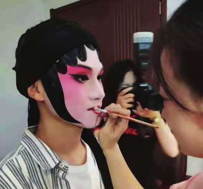 本就有戏曲功底的他,在指导老师刘洁的带领下从开嗓练习做起,从最基本的嗓音练习到后来的程式化动作和曲目演唱,张景都认认真真地完成,从不“挑食”、“偏食”,直到比赛前夕,他依旧在练习。