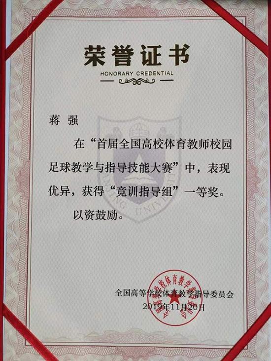 原文链接:西北师大蒋强获“首届全国高校体育教师校园足球教学与指导一等奖