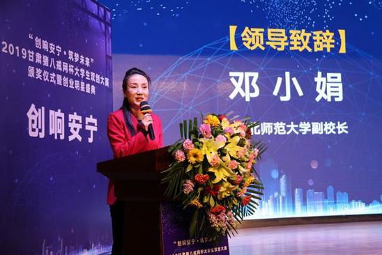 12月19日,“创响安宁·筑梦未来”教育峰会暨“甘肃猪八戒网”杯2019大学生创新创业大赛颁奖仪式在西北师大举办。西北师大副校长邓小娟参会并致辞,安宁区区委书记郭海泉出席,安宁区委区政府相关领导,全区各街道各部门负责同志,辖区内各高校双创负责人,猪八戒网相关负责人及企业代表、媒体代表、高校大学生代表400人参加活动。