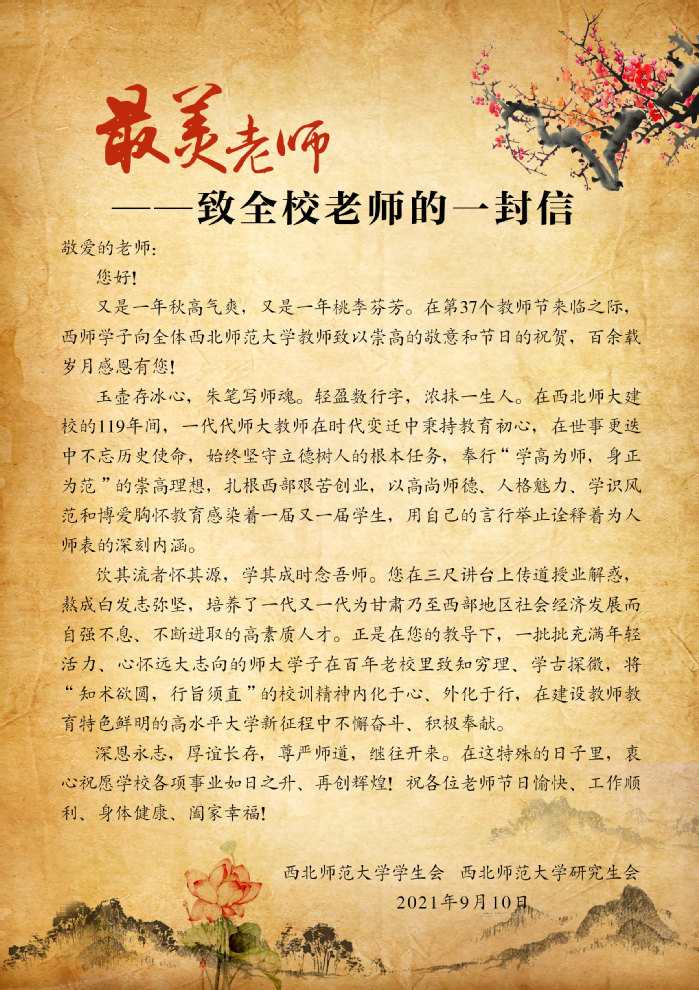 共青团中央、全国学联致信感谢西北师大