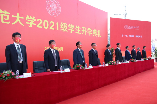 百年师大筚路蓝缕、教育兴国;百年师大弘文励教、薪火相传。悠扬的校歌回响在云亭广场上空,也回荡在每个西师人的心中。全体校领导在歌声中为2021级新生代表佩戴校徽,这一刻,“知术欲圆 行旨须直”的校训精神开启了新的传递,新的一批师大人踏上了新的征程。