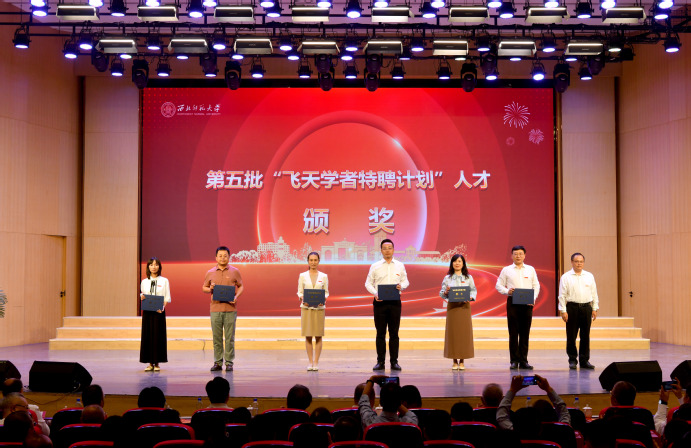 王全进宣读表彰人员及集体名单并为甘肃省第五批“飞天学者特聘计划”人才代表颁奖。