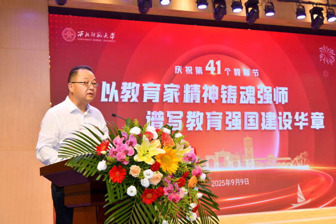 “师者立心铸魂,教育薪火相传。”贾宁最后指出,西北师大的美好未来需要每一位教师共同奋斗,希望全体教职工以主人翁和奋进者的姿态,坚定信心、务实苦干、矢志奋斗,积极投身学校一流大学建设实践,用智慧、激情和汗水为学校高质量发展作出新的更大贡献!