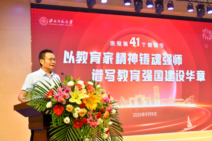 贾宁强调,当前,学校正处于攻坚“双一流”、冲刺高质量发展的关键期,肩负着服务教育强国建设的时代重任。面对新时代对教师队伍的更高要求,全体师大人更需以“躬耕教坛、强国有我”的使命自觉,深刻体悟“教育兴则国家兴,教师强则教育强”的时代内涵,共同锻造一支师德高尚、业务精湛、结构合理、充满活力的高素质专业化教师队伍,才能为学校破局突围、跨越升级注入强劲动能,为教育强国建设夯实“第一资源”根基。全体教职工要以教育家精神为灯塔,以李蒸先生等先辈为镜鉴,把“国之大者”刻进教育理想,以“四有”好老师标准锤炼品格,在躬身实践中书写“强师报国”的时代答卷;要砥砺教育初心,坚定为党育人、为国育才的政治自觉,以“严谨治学、精益求精”的态度潜心学术,以过硬本领扛牢育人使命,立志成为“经师”与“人师”统一的“大先生”。全校上下要着力为教师全身心投入教育教学工作提供坚实支撑与保障,努力提升教师获得感、荣誉感,以崇教情怀厚植校园文化热土,以尊师的文化土壤滋养出更多扎根西北、奉献家国的“强国优师”;要优化人才生态,进一步完善人才引进、培养、激励全链条机制,持续提升人才服务的精准度和效能,让各类人才各尽其能、脱颖而出,为学校的高质量发展铸就坚实的人才基石。