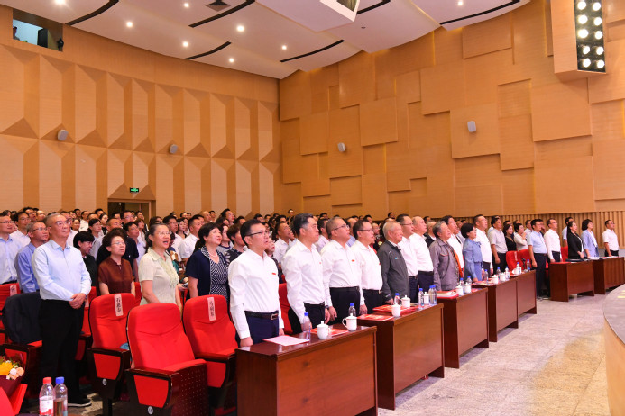 全体与会师生庄严肃立、齐唱国歌,大会正式开始。
