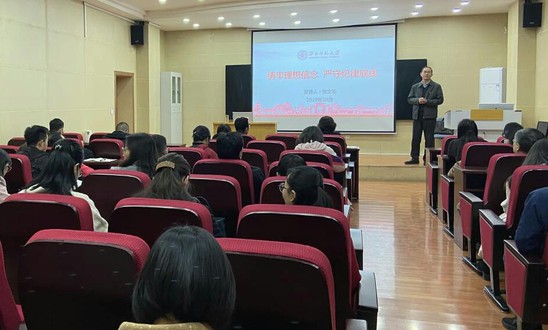 10月29日,西北师大数学与统计学院、教育技术学院邀请学校纪委副书记张文礼教授为全体教师党员讲授《铸牢理想信念严守纪律底线》廉政教育专题党课。