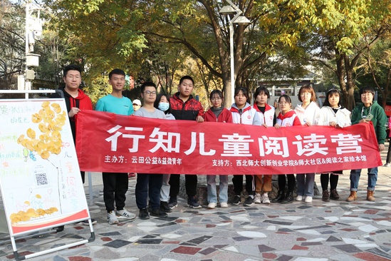 11月7日下午,创新创业学院学生孵化企业——云田公益发展中心和悦读之家绘本馆共同主办的“行知儿童阅读营”活动在西北师大艺术广场举办。本次活动以“抓住秋天的尾巴”为主题,分“阅读秋天的绘本”“寻找秋天的痕迹”“制作秋天的礼物”三个环节推进开展,我校社区50余名儿童和家长积极参加。