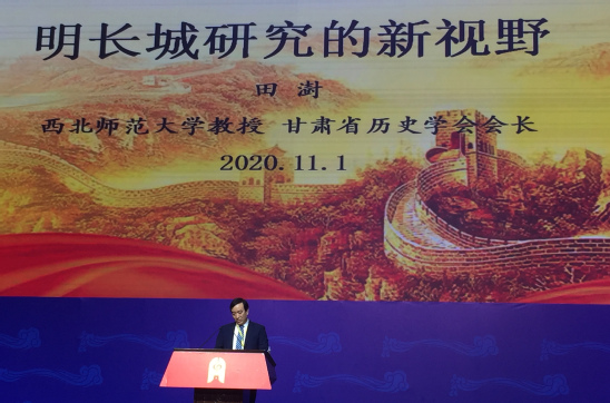 田澍作了《明长城研究的新视野》的主题发言,详细阐述了明长城修建的明朝建立至土木之变、景泰皇帝即位至俺答封贡、俺答封贡至明亡等三个阶段。田澍认为,在建长城文化公园时,除了大量的物质遗存,还要把文化遗存考虑进去,将长城的软文化与硬文化结合起来,使长城的内涵更加丰富;要将长城文化的认识上升到新的高度,更客观、理性地看待长城,把长城文化发掘好、保护好、传承好。