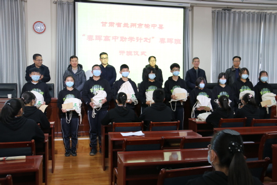 12月24日,“春晖高中助学计划”项目成长陪伴基金发放仪式在兰州市榆中县恩玲中学举行。榆中县教育局、榆中县第一中学、榆中县恩玲中学领导出席活动并致辞。榆中县第一中学和恩玲中学,两所高中60名学习刻苦、上进心强、入学成绩在年级前20%且家庭经济相对贫困的优秀学生入选项目,从高一入学直到高三毕业,持续接受该项目资助。