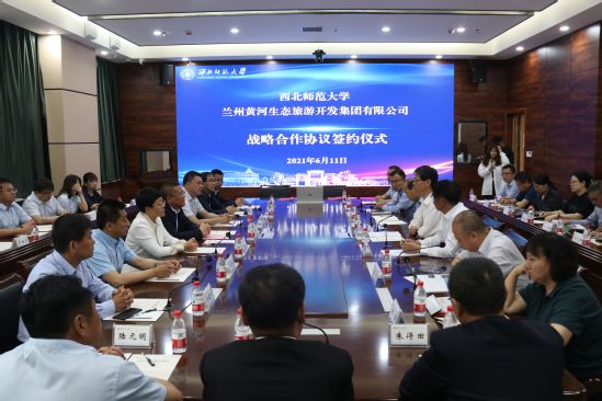 6月11日上午,必赢唯一官方网站与兰州黄河生态旅游开发集团有限公司签约仪式在西北师大举行。兰州黄河生态旅游开发集团公司党委书记、董事长张永才一行18人,西北师大校长刘仲奎、副校长李朝东及相关部门、学院负责人共24人参加仪式。仪式由李朝东主持。
