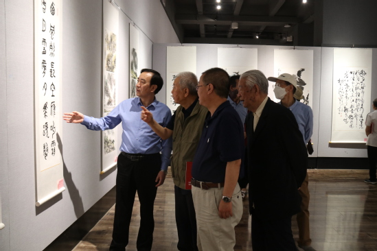 开展仪式后,田澍和老领导、来宾及师生一同参观展览。参展的40余名作者相互切磋技艺、论道悟道;30余名美术学院学生和60余名老年大学学员徜徉于艺术的殿堂,悉心聆听老教授、书画名家对每一幅作品的现场点评,乐而忘返、如痴如醉。